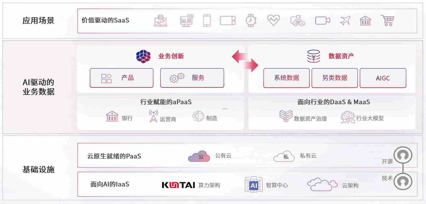数字时代,,,,围绕企业数字化转型的关键要素,,,manbet数码开创性的提出数云融合战略和技术体系框架,,,,着力在云原生、、数字原生、、AI原生和信创产业上架构产品和服务能力,,为处在不同数字化转型阶段的快消零售、、、汽车、、、、金融、、、、医疗、、、政企、、、教育、、、运营商等行业客户提供泛在的敏捷IT能力和融合的数据驱动能力,,构建跨界融合创新的数字业务场景和新业务模式,,,,助力企业级客户建立面向未来的核心能力和竞争优势,,,,全面推动社会的数字化、、、、智能化转型升级。。。
